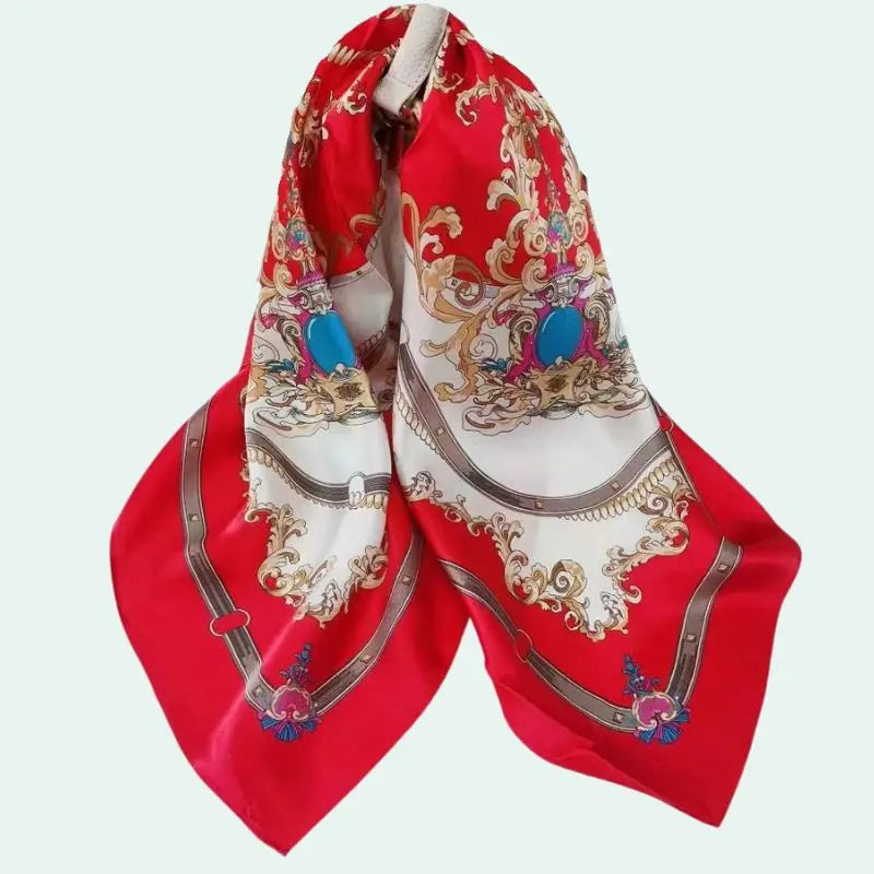 Foulard carré pure soie motif baroque rouge