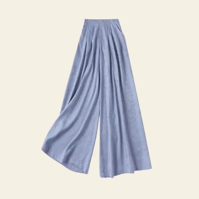 La fluidité du pantalon jambes larges bleu ciel en soie filée