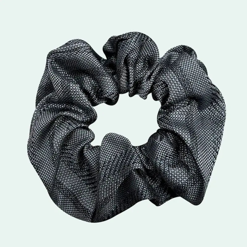 Chouchou en soie de mûrier 25 mommes gris texturé : élégance subtile et texture fine. Sa soie dense 25 mommes protège les cheveux tout en apportant un effet satiné discret et moderne.