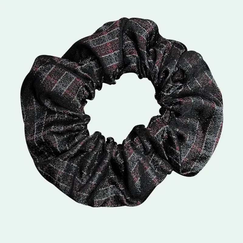 Chouchou en soie de mûrier 25 mommes noir rayures : un accessoire chic et structuré. Son motif à fines rayures et sa soie dense assurent maintien, brillance et douceur à vos cheveux.