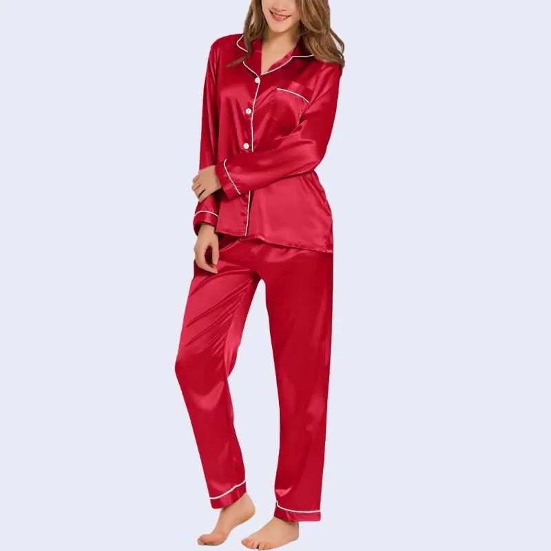 Style et occasions pour l’ensemble pyjama chemisier long boutonné et pantalon en satin brillant