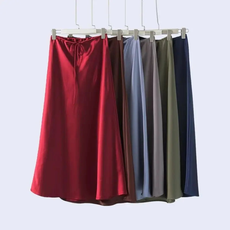 Jupe longue coupe droite ajustable en acétate et élasthanne