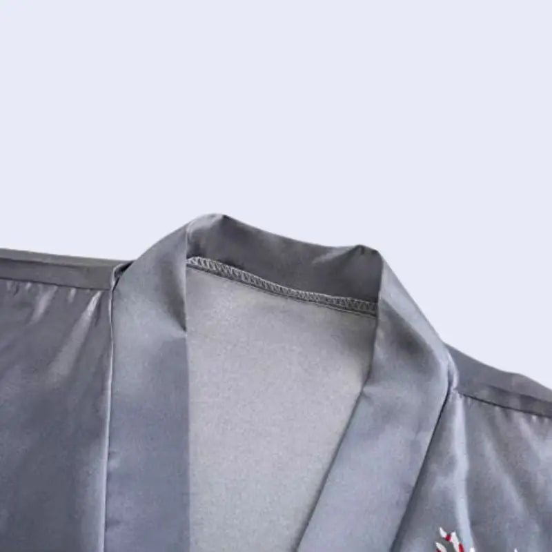 Kimono court brillant motif oiseau en satin