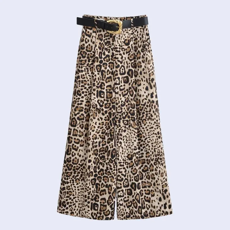 Ce pantalon ample taille haute avec ceinture en satin se distingue par sa ligne épurée et son effet légèrement brillant. Sa fermeture latérale invisible et sa ceinture coordonnée assurent un maintien parfait tout en affinant la silhouette. Proposé en plusieurs teintes — marron, noir, doré et léopard — il s’adapte à toutes les envies, des looks élégants aux associations plus audacieuses. Une pièce qui conjugue style et fluidité.