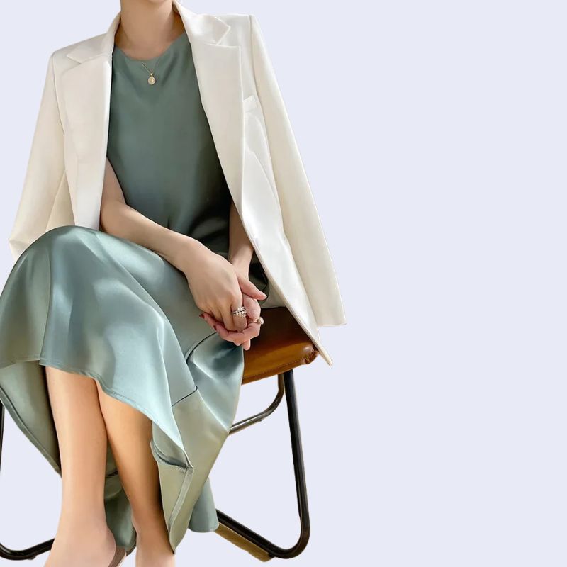 Portée seule, la robe midi en satin incarne la simplicité chic. Pour un look de jour, combinez-la avec un blazer clair et des sandales en cuir. En soirée, optez pour des talons et une pochette élégante pour sublimer son éclat. Ses teintes neutres et lumineuses s’accordent parfaitement avec d’autres pièces raffinées de la collection chemises en satin ou les kimonos en satin pour un ensemble harmonieux et sophistiqué.